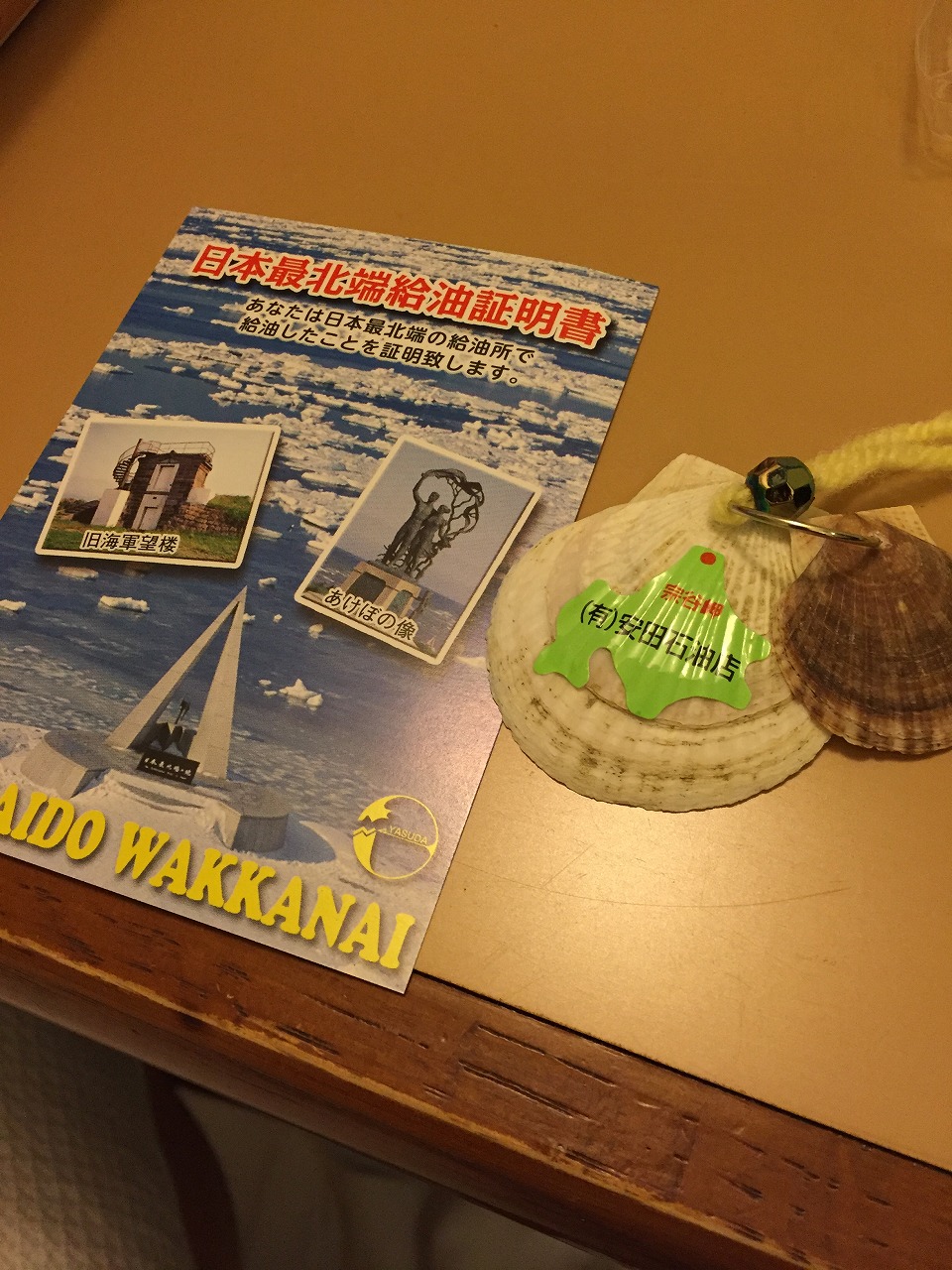 給油証明書と安全祈願のホタテ稚貝のお守りをもらいました!