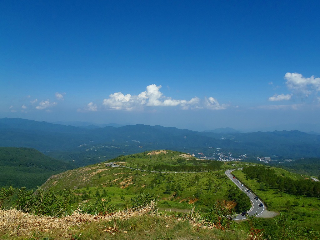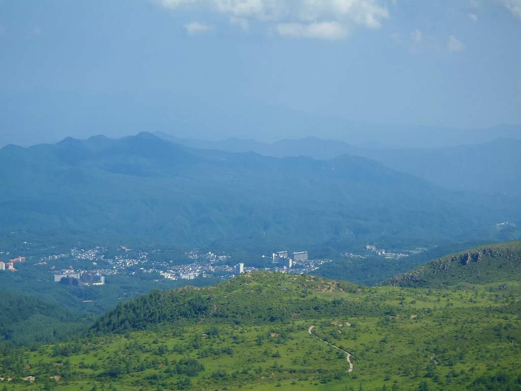 遠くに、なんと草津温泉街が見えます。