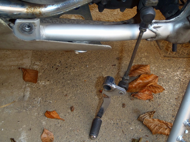 すると、チェンジペダルの支点部分のボルトが抜け落ちているではないですか!!