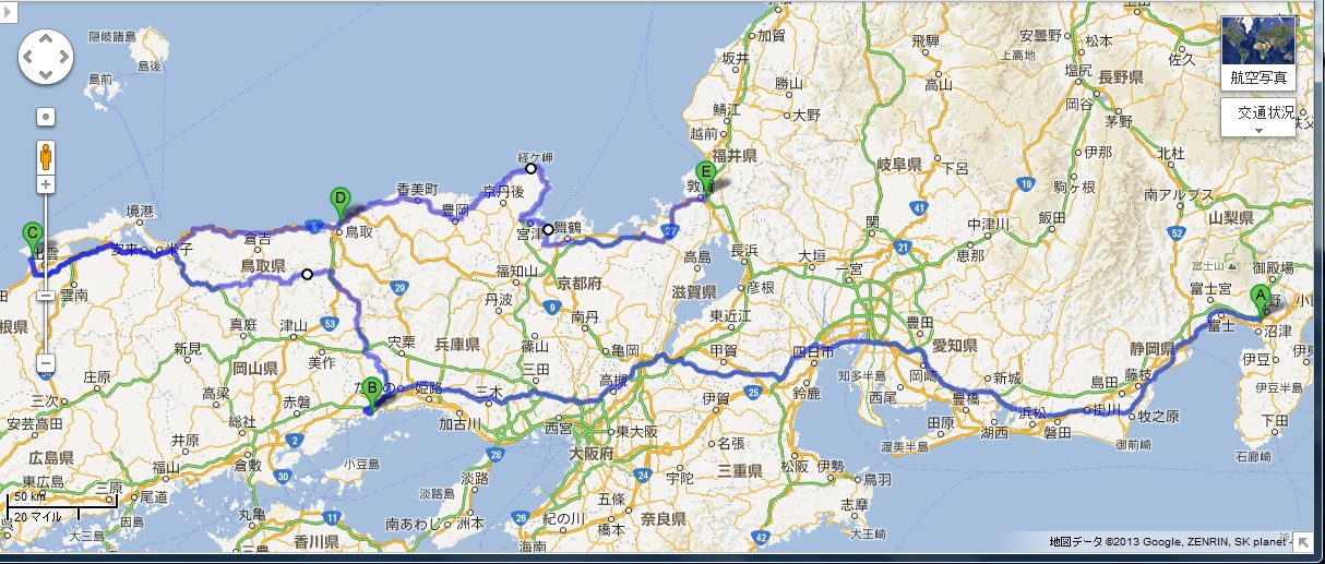 千葉県~赤穂市~中国山地(大山)経由~出雲大社~鳥取~敦賀~千葉県