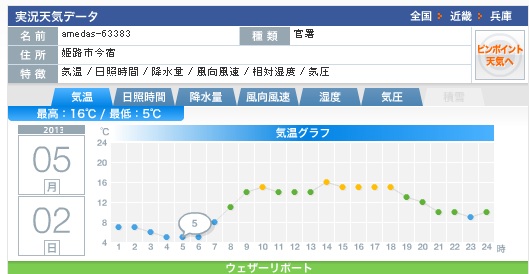 5月2日の姫路市の朝の気温は、、