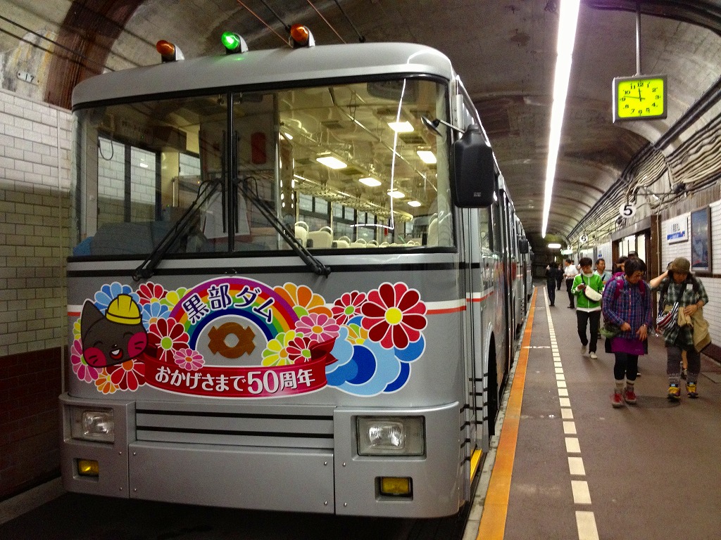 日本で唯一の「トローリバス」に乗り換えて黒部ダム駅まで行きます。