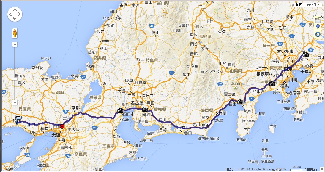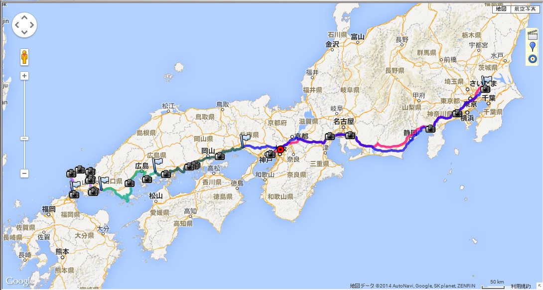 姫路~千葉県(管理人さんの自宅があるところ)