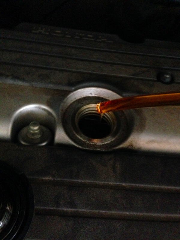 エンジンの上部にあるオイル供給部より、