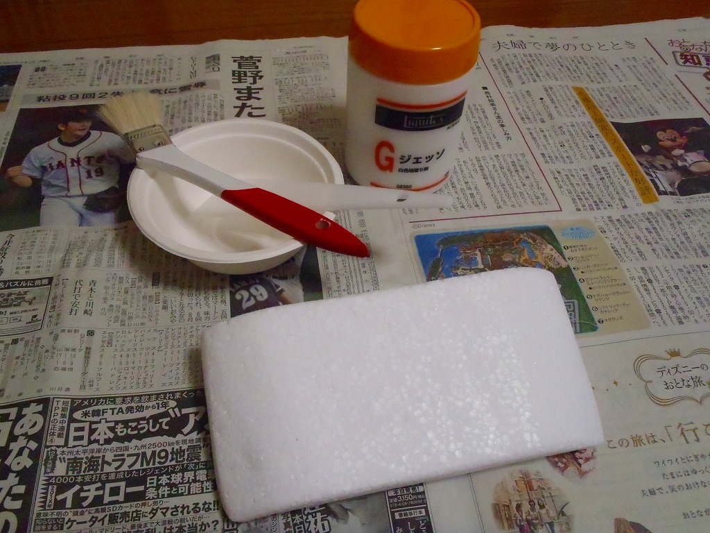 こちらで、発泡スチロール雄型をコーティングしたいと思います。