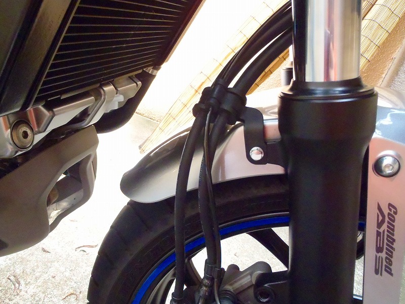 ただし、このままではブレーキホースの遊び防止用の留め具で