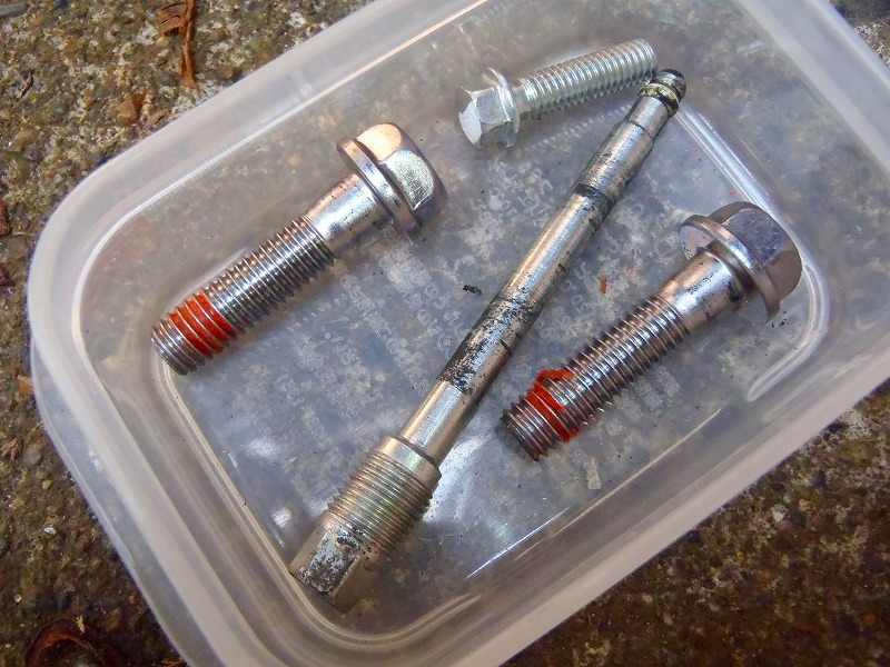 上下のネジ部に赤いゆるみ止めが付いているボルトが①と②のボルトになり、
