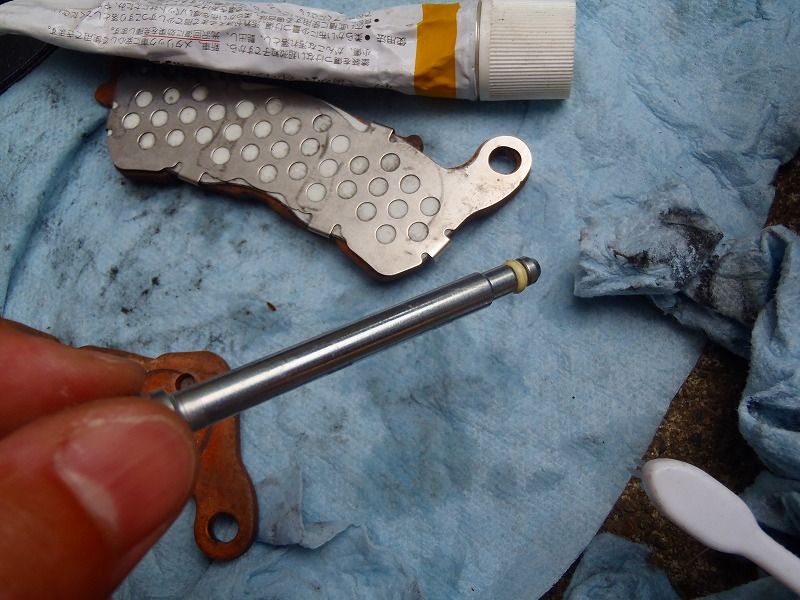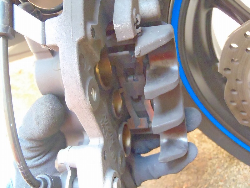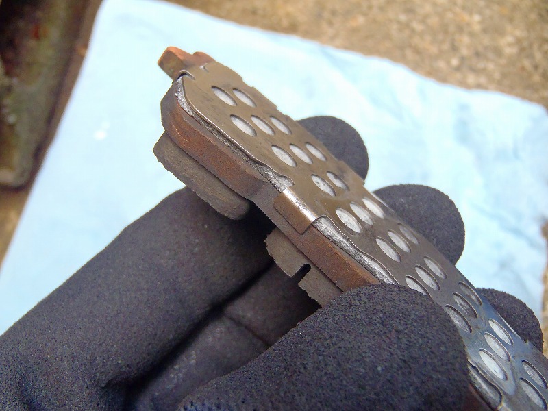 奥側のパッドにだけ、鳴き防止のプレートが付いています。