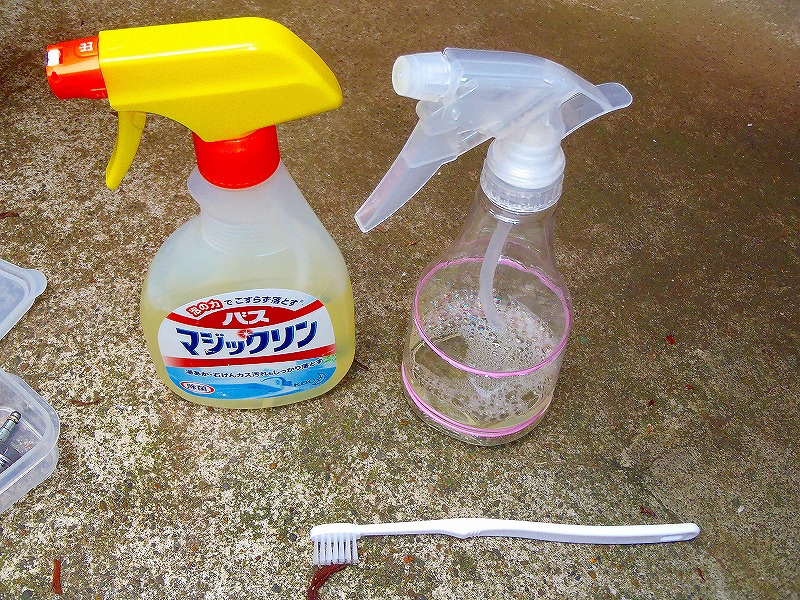 スプレーしてから、歯ブラシを使用して、ゴシゴシすると、、、