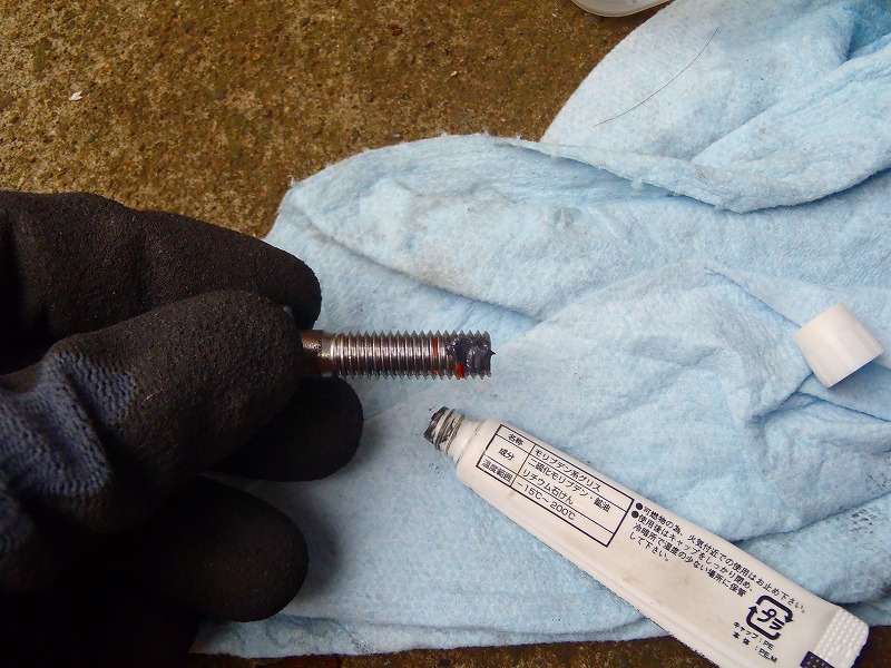 その後に、③のボルトを入れますが、こちらにも焼き付き防止のため、